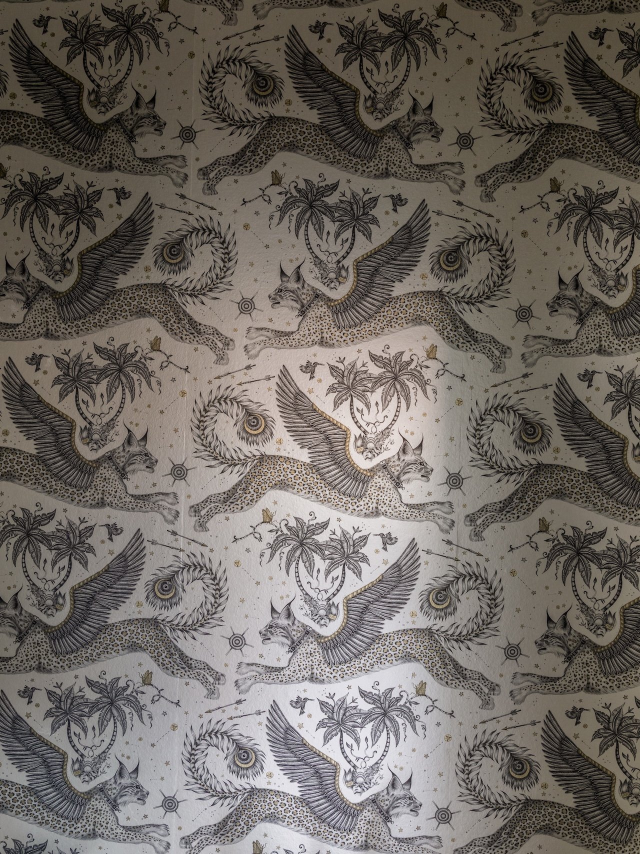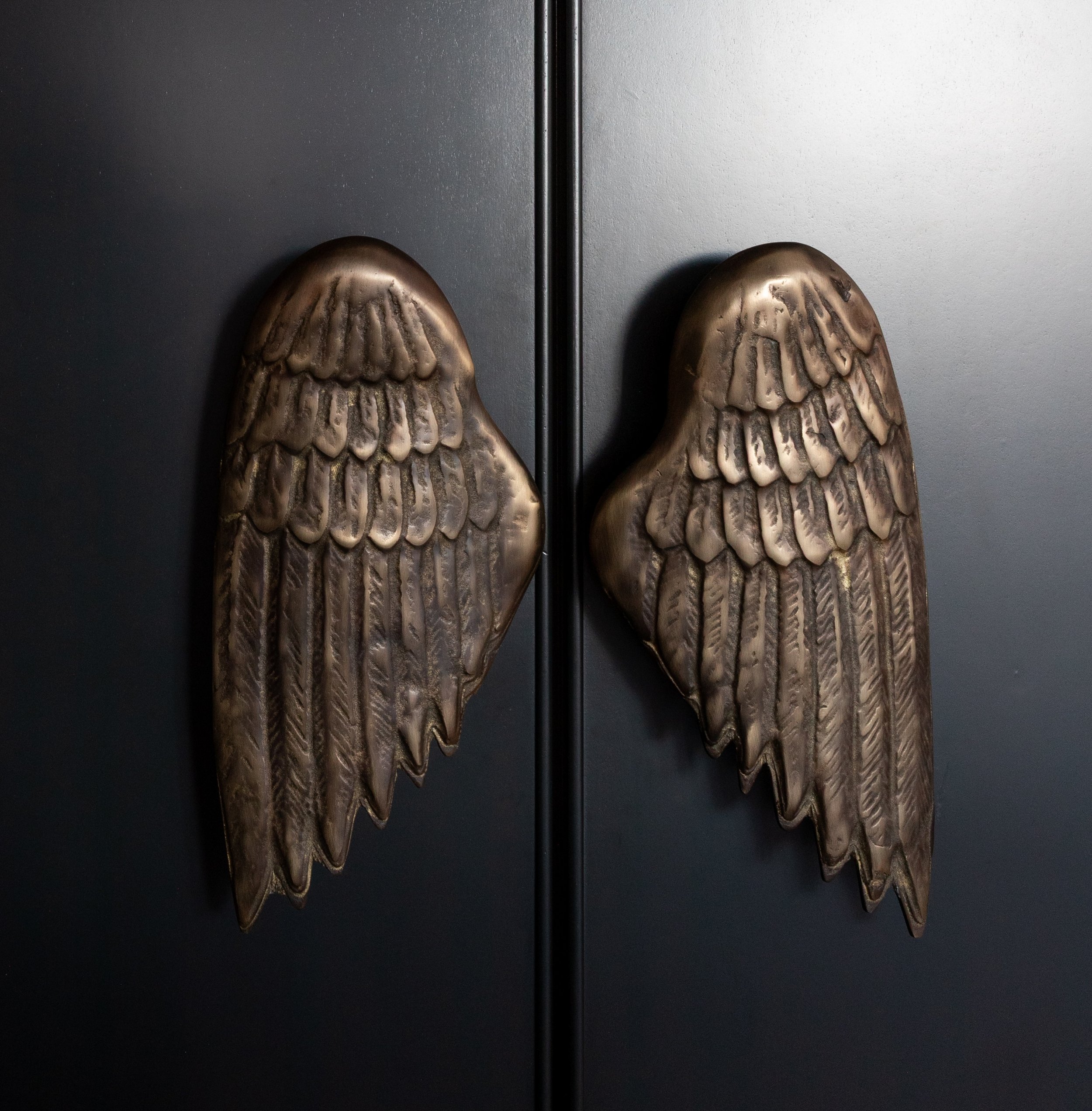 drama is the common tongue: six-foot leather fringe pendants cascading from the ceiling’s peak. sassy + brassy fridge pulls shaped like angel wings. snakes slithering across a runner. a staircase that doesn’t shout, but hums—plastered low, lit from within, guiding you upward like a quiet ritual.