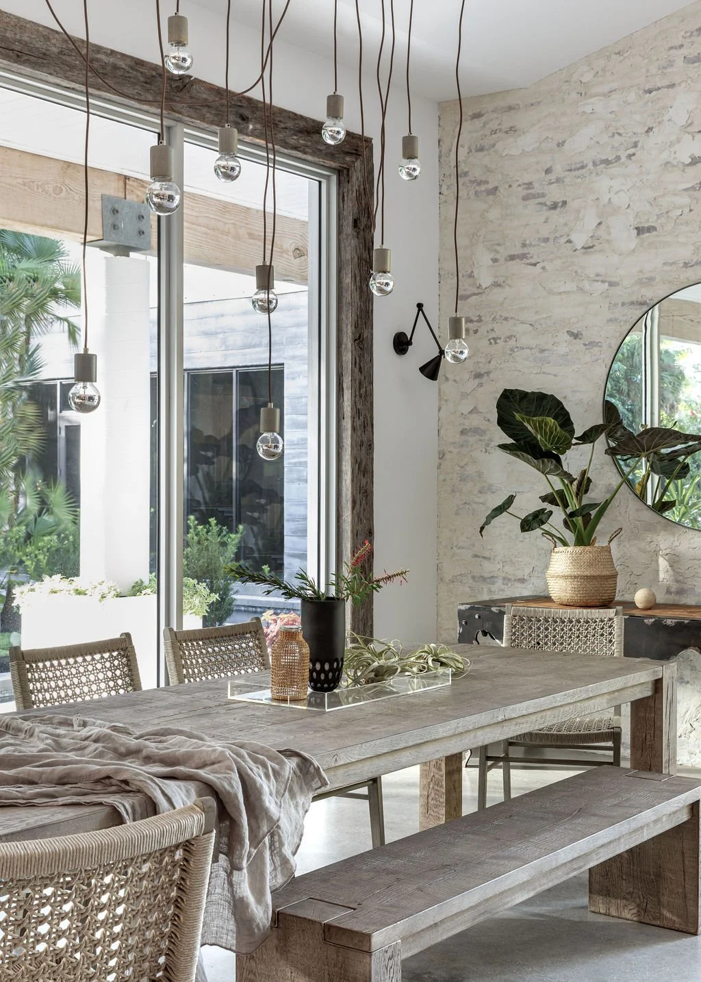 we were all on the same page in terms of flipping the script [read: shying away from maximalist floridian appointments in favor of organic elements, layered accents + a soothing color palette]. we inherited some good, good texture worth keeping [exposed brick + reclaimed wood] and zeroed in on a design plan befitting of a boutique hotel in bali.